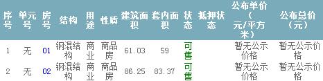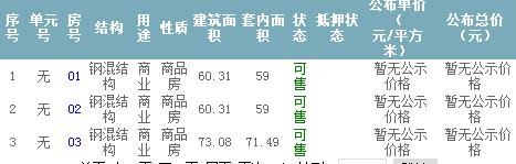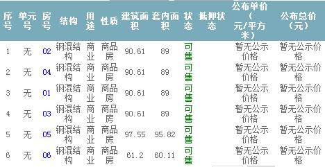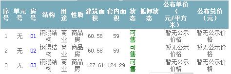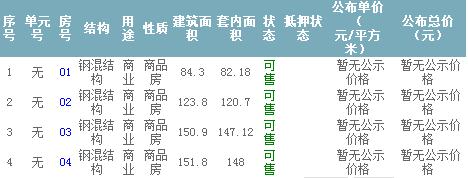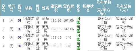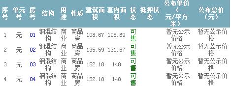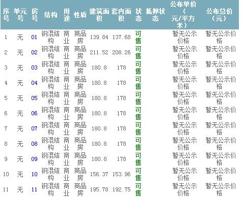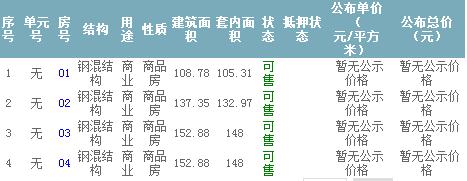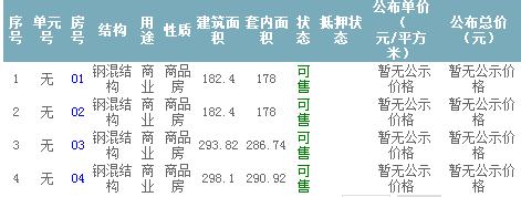 根據(jù)云南省物價局關(guān)于發(fā)布《云南省商品房銷售明碼標(biāo)價實施細則(試行)》的通知,現(xiàn)將該項目商品住房的準(zhǔn)售房源及每套房屋價格向社會公布,房地產(chǎn)開發(fā)企業(yè)應(yīng)嚴(yán)格按照公布價格,商品房銷售明碼標(biāo)價實行一套一標(biāo)。商品房經(jīng)營者應(yīng)當(dāng)對每套商品房按照建筑面具進行明碼標(biāo)價,否則,房產(chǎn)登記機關(guān)不予登記備案。花香滿徑小區(qū)商業(yè)準(zhǔn)售房源及房價信息如下: