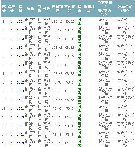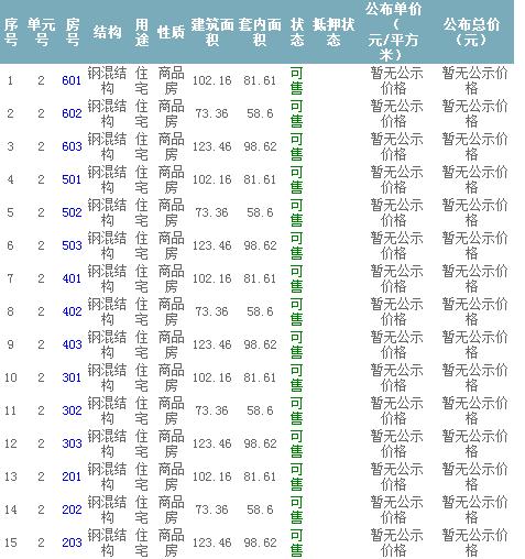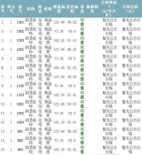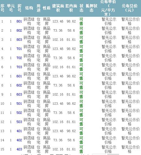 根據云南省物價局關于發布《云南省商品房銷售明碼標價實施細則(試行)》的通知,現將該項目商品住房的準售房源及每套房屋價格向社會公布,房地產開發企業應嚴格按照公布價格,商品房銷售明碼標價實行一套一標。商品房經營者應當對每套商品房按照建筑面積進行明碼標價,否則,房產登記機關不予登記備案。興冶國際Ⅴ15棟住宅準售房源及房價信息如下: