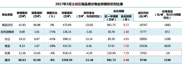 商品住宅庫存529.90萬方,按照近一年銷售791.02萬方的去化速度,需0.67年消化;本月辦公及商業均因海源財富中心大批量獲得預售使庫存較月初有所增加;其余物業均有不同程度減少,市場仍處于高位運行,呈現良好去庫存態勢,但商業、辦公和車庫庫存仍高,去化速度緩慢,壓力巨大.