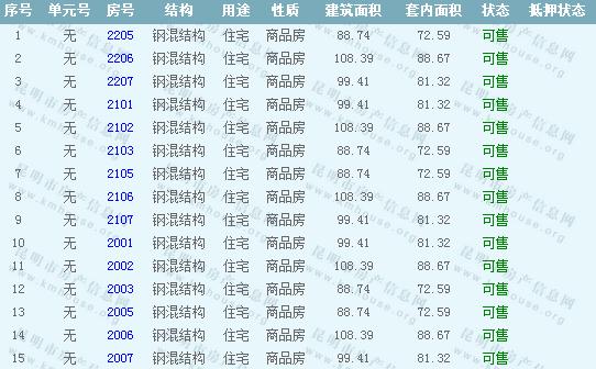 依據《云南省商品房銷售明碼標價實施細則》,商品房經營者應當在商品房交易(銷售)場所的醒目位置放置標價牌、價目表或者價格手冊,有條件的可同時采取電子信息屏、多媒體終端或電腦查詢等方式。商品房銷售明碼標價應當做到價目齊全,標價(示)內容真實明確、字跡清晰、標示醒目,并標示價格主管部門12358投訴舉報電話。萬科城市之光5棟、6棟準售房源信息如下: