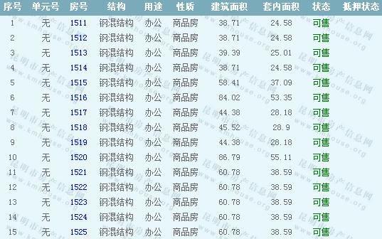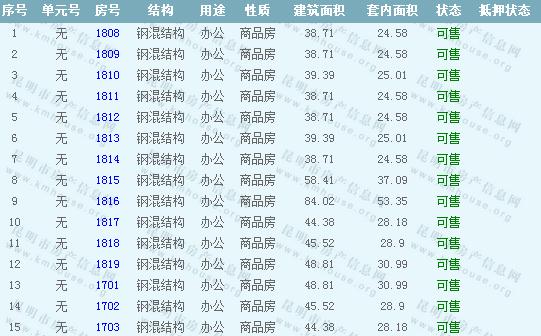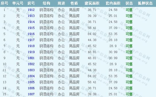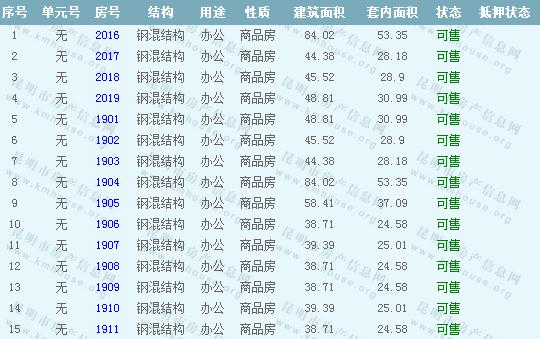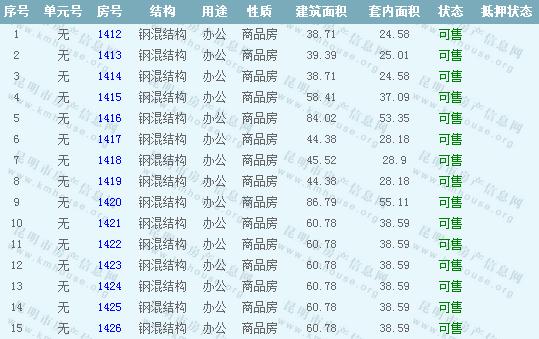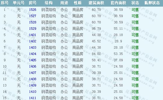依據《云南省商品房銷售明碼標價實施細則》,商品房經營者應當在商品房交易(銷售)場所的醒目位置放置標價牌、價目表或者價格手冊,有條件的可同時采取電子信息屏、多媒體終端或電腦查詢等方式。商品房銷售明碼標價應當做到價目齊全,標價(示)內容真實明確、字跡清晰、標示醒目,并標示價格主管部門12358投訴舉報電話。海倫國際4棟寫字樓準售房源信息如下: