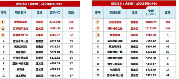 本周俊發灣流海集中備案,成為成交面積、成交金額雙料冠軍,萬科城市之光緊隨其后,新城吾悅廣場和華夏御府分別成為成交面積、成交金額第三名。