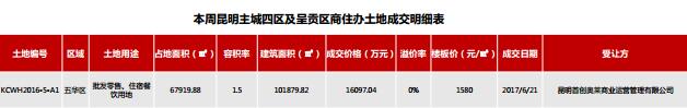 本周昆明主城四區及呈貢區商住辦土地無供應。