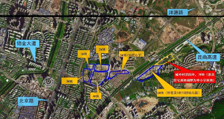 羊腸小村項目用地位于昆明市主城區東北側,昆曲高速與鉑金大道的交叉口北側,總用地面積513.73畝,共計包含六個凈用地地塊。