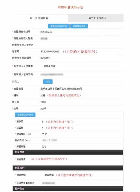 昆明市房屋交易產權處關于房源核驗申請的填寫說明