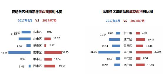 昆明-商品房各區(qū)域月度供銷對比