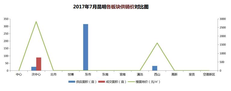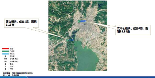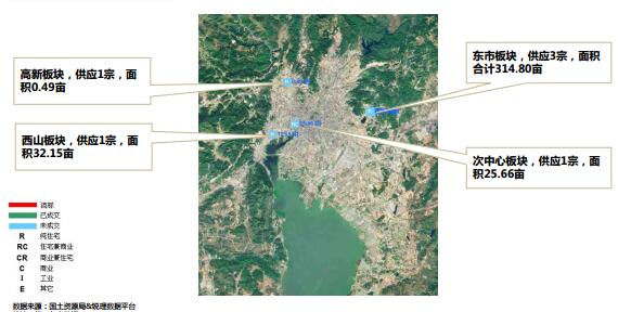 板塊:次中心、東市和西山板塊有土地供應(yīng),分別為25.66畝、314.88畝和32.15畝;次中心和西山板塊有成交,其中次中心板塊成交88.84畝,樓面價(jià)2838.69元/㎡,西山板塊成交32.15畝,樓面價(jià)1595.35元/㎡;本月無土地溢價(jià)成交。