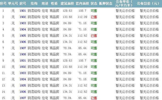 根據(jù)云南省物價局關(guān)于發(fā)布《云南省商品房銷售明碼標價實施細則(試行)》的通知,現(xiàn)將該項目商品住房的準售房源及每套房屋價格向社會公布,房地產(chǎn)開發(fā)企業(yè)應(yīng)嚴格按照公布價格,商品房銷售明碼標價實行一套一標。商品房經(jīng)營者應(yīng)當(dāng)對每套商品房按照建筑面具進行明碼標價,否則,房產(chǎn)登記機關(guān)不予登記備案。七彩云南第壹城秀璟苑Ⅰ17棟準售房源及房價信息如下: