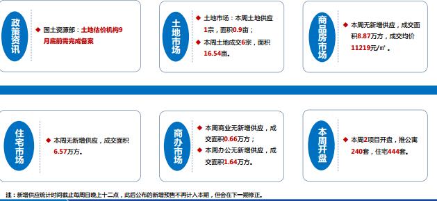 商品房市場:本周無新增供應(1個項目獲得預售但未公布產品明細);集中備案項目減少,成交量下降。