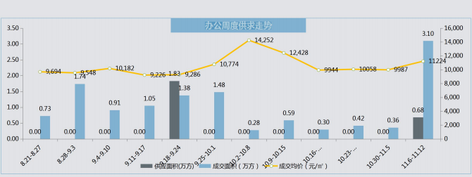 本周辦公供應0.68萬方,供應項目為碧桂園鳳凰灣。