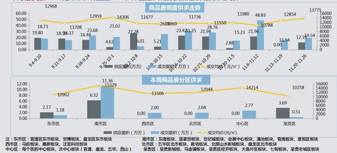 本周供應增長,主力供應集中在南市區(qū)和呈貢區(qū),成交量價齊升