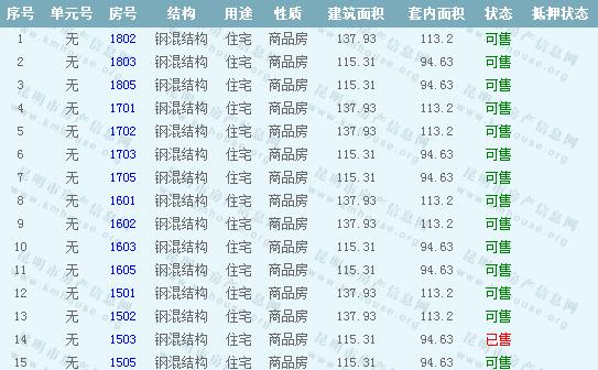 依據《云南省商品房銷售明碼標價實施細則》,商品房經營者應當在商品房交易(銷售)場所的醒目位置放置標價牌、價目表或者價格手冊,有條件的可同時采取電子信息屏、多媒體終端或電腦查詢等方式。商品房銷售明碼標價應當做到價目齊全,標價(示)內容真實明確、字跡清晰、標示醒目,并標示價格主管部門12358投訴舉報電話。萬科翡翠準售房源信息如下: