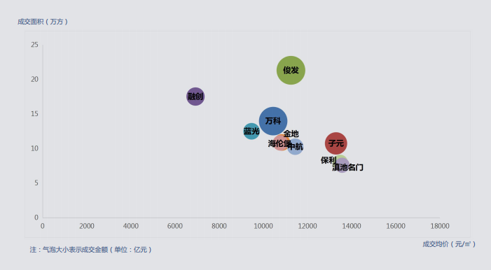 當(dāng)月TOP10房企銷(xiāo)售金額門(mén)檻21.99億,俊發(fā)、萬(wàn)科、子元銷(xiāo)售金額分別排名第一、第二、第三