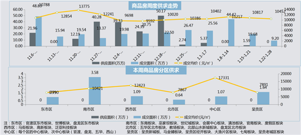本周成交均價10452元/平米,環(huán)比下降3.4%,本周均價較低的呈貢區(qū)成交量上升,整體市場均價拉低。