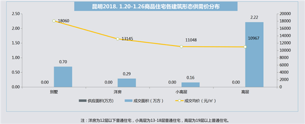 本周別墅供應(yīng)0萬方,成交0.7萬方,均價18060元/㎡,成交量僅次于高層,別墅主要成交形態(tài)為聯(lián)排與雙拼;