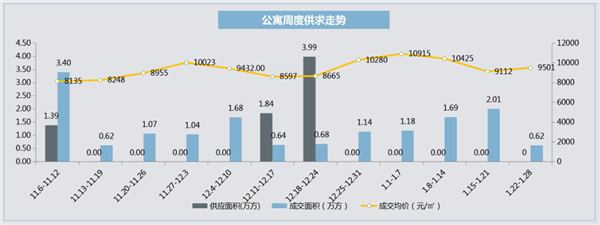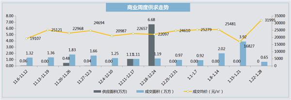 本周商業(yè)市場供應(yīng)端持續(xù)為零,以去庫存為主,成交量跌價漲