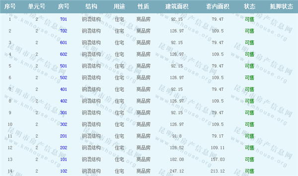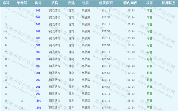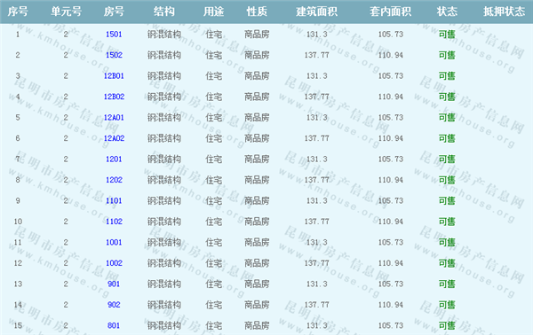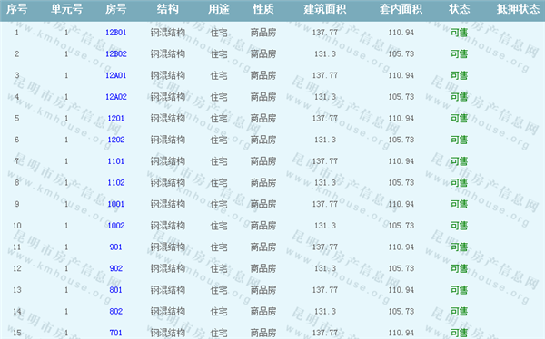 依據《云南省商品房銷售明碼標價實施細則》,商品房經營者應當在商品房交易(銷售)場所的醒目位置放置標價牌、價目表或者價格手冊,有條件的可同時采取電子信息屏、多媒體終端或電腦查詢等方式。商品房銷售明碼標價應當做到價目齊全,標價(示)內容真實明確、字跡清晰、標示醒目,并標示價格主管部門12358投訴舉報電話。云秀康園7號院Ⅰ準售房源信息如下: