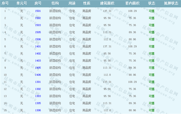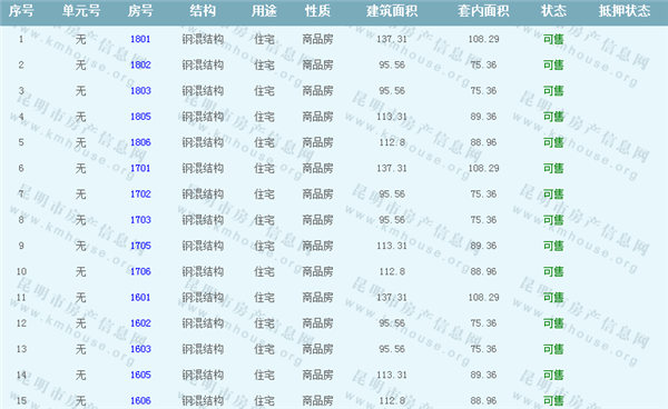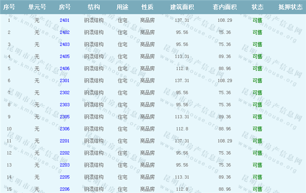 依據《云南省商品房銷售明碼標價實施細則》,商品房經營者應當在商品房交易(銷售)場所的醒目位置放置標價牌、價目表或者價格手冊,有條件的可同時采取電子信息屏、多媒體終端或電腦查詢等方式。商品房銷售明碼標價應當做到價目齊全,標價(示)內容真實明確、字跡清晰、標示醒目,并標示價格主管部門12358投訴舉報電話。花岸小區一期Ⅲ準售房源信息如下: