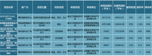 新增KCPL2017-5-A1、A2地塊、KCPL2017-5-A5-1地塊(碧桂園御龍半山),昆明首創(chuàng)奧萊商業(yè)中心建設(shè)項(xiàng)目(奧特萊斯),西山區(qū)3號(hào)片區(qū)“城中村”改造項(xiàng)目A-4、A-5、A-7地塊(海倫堡中央廣場(chǎng)過(guò)規(guī)。過(guò)規(guī)地塊占地面積為20.85萬(wàn)㎡,總建面積90.76萬(wàn)㎡。