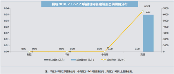 本周成交0.18萬(wàn)方,環(huán)比大幅減少98%,春節(jié)前一周成交量已明顯放緩,本周因春節(jié)假期,成交驟降,僅呈貢區(qū)少量成交
