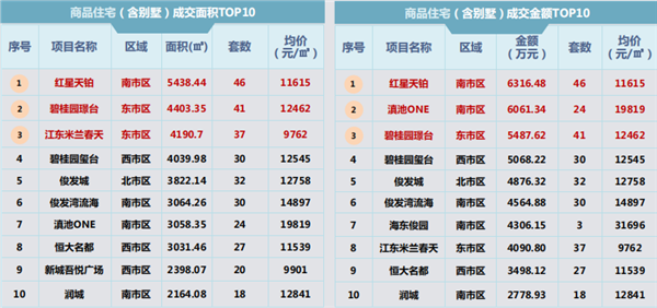 受集中備案影響紅星天鉑、碧桂園璟臺(tái)進(jìn)入TOP10榜單前三。