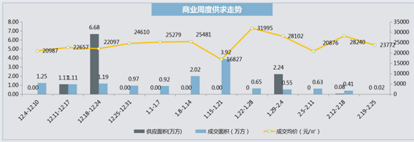 本周主城區(qū)商品房市場(chǎng)無(wú)供應(yīng),春節(jié)前一周集中放量27.31萬(wàn)方,本周遇春節(jié)假期,無(wú)新增工銀