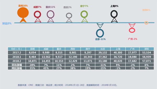數據來源:CRIC;數據口徑:商品房;統計時間:2018年2月1日-28日,數據截取時間:2018年3月10日