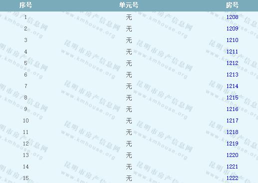 依據《云南省商品房銷售明碼標價實施細則》,商品房經營者應當在商品房交易(銷售)場所的醒目位置放置標價牌、價目表或者價格手冊,有條件的可同時采取電子信息屏、多媒體終端或電腦查詢等方式。商品房銷售明碼標價應當做到價目齊全,標價(示)內容真實明確、字跡清晰、標示醒目,并標示價格主管部門12358投訴舉報電話。準售房源信息如下:
