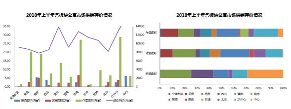 【公寓供銷存價對比】2018年上半年新增最多的是西市區多達37.41萬方占比24.92%;存量南市區最多,達46.90萬方, 占比32%;售價最高為中市區11820元/㎡。