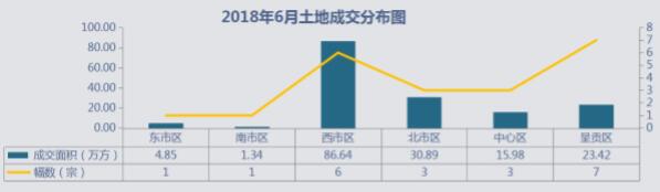 本月土地成交量上升,其中呈貢區(qū)7宗,西市區(qū)6宗,北市區(qū)和中心區(qū)各3宗,東市區(qū)和南市區(qū)各1宗,西市區(qū)成交面積占比達53%。