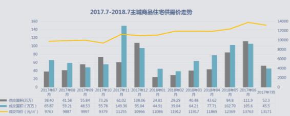 7月主城商品住宅成交 45.5萬方,環比大幅下降95.69%,同比下降30.92%;由于限購政策的出臺,成交量大幅下降。