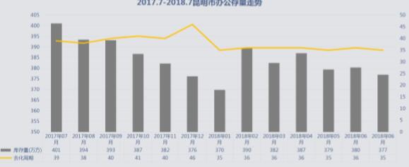 辦公近年來一直控制供應,以消耗庫存為主,近期去庫存效果明顯,去化周期降至35個月。