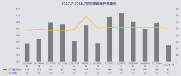 7月商業供應面積2.3萬方,環比下降39.79%,同比下降55.94%,供應量小幅下滑。