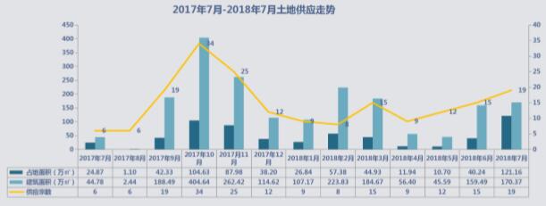 據(jù)本機(jī)構(gòu)統(tǒng)計(jì),截止到2018年7月31日,昆明市土地交易中心和昆明市國土資源公示供應(yīng)商住辦土地共19宗,擬出讓占地面積 共計(jì)121.16萬平米,出讓綜合價(jià)金共64.23億元。