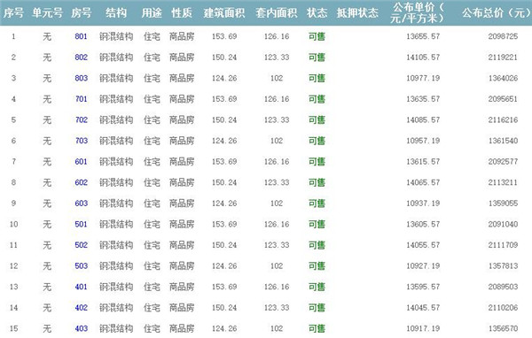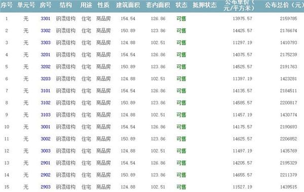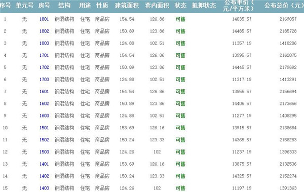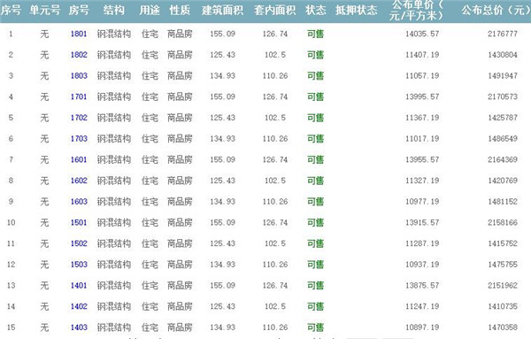 根據(jù)云南省物價局關(guān)于發(fā)布《云南省商品房銷售明碼標價實施細則(試行)》的通知,現(xiàn)將該項目商品住房的準售房源及每套房屋價格向社會公布,房地產(chǎn)開發(fā)企業(yè)應嚴格按照公布價格,商品房銷售明碼標價實行一套一標。商品房經(jīng)營者應當對每套商品房按照建筑面具進行明碼標價,否則,房產(chǎn)登記機關(guān)不予登記備案。準售房源及房價信息如下: