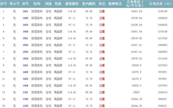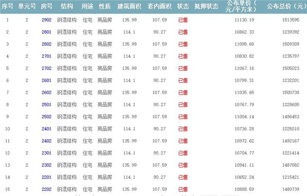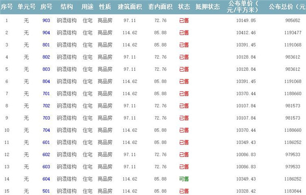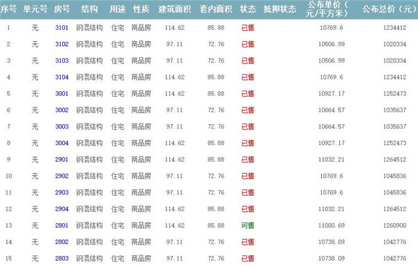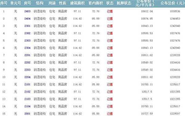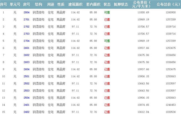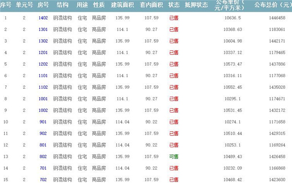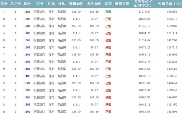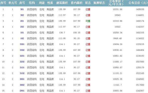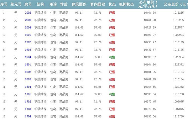 根據云南省物價局關于發布《云南省商品房銷售明碼標價實施細則(試行)》的通知,現將該項目商品住房的準售房源及每套房屋價格向社會公布,房地產開發企業應嚴格按照公布價格,商品房銷售明碼標價實行一套一標。商品房經營者應當對每套商品房按照建筑面具進行明碼標價,否則,房產登記機關不予登記備案。準售房源及房價信息如下: