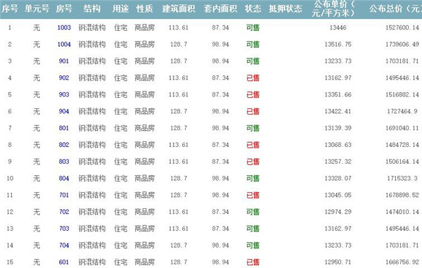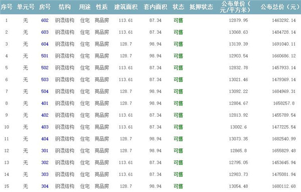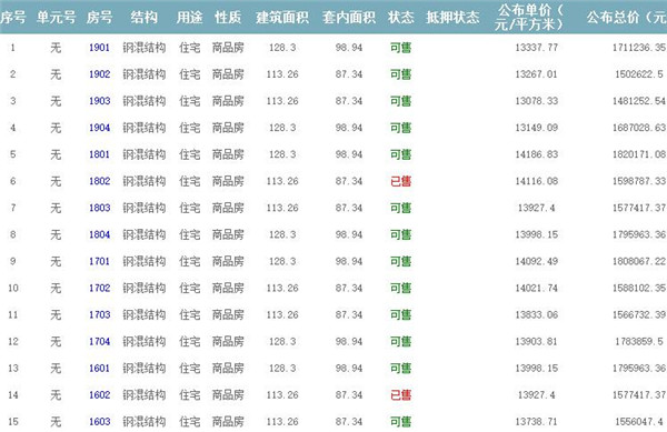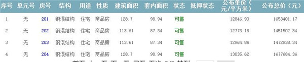 根據云南省物價局關于發布《云南省商品房銷售明碼標價實施細則(試行)》的通知,現將該項目商品住房的準售房源及每套房屋價格向社會公布,房地產開發企業應嚴格按照公布價格,商品房銷售明碼標價實行一套一標。商品房經營者應當對每套商品房按照建筑面具進行明碼標價,否則,房產登記機關不予登記備案。準售房源及房價信息如下: