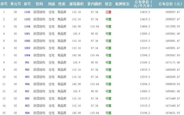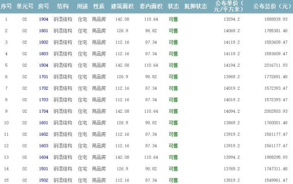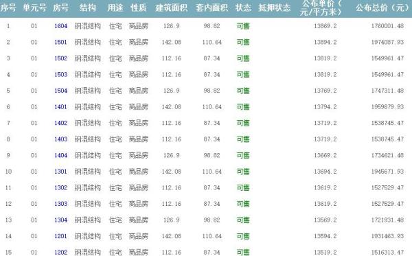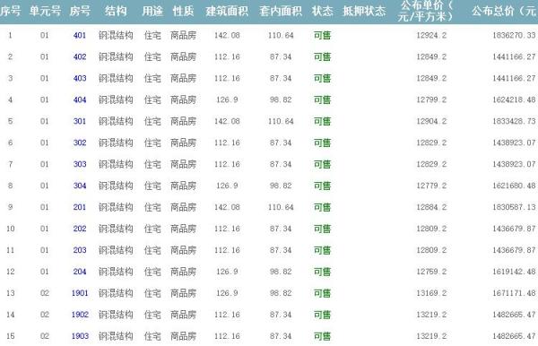 根據云南省物價局關于發布《云南省商品房銷售明碼標價實施細則(試行)》的通知,現將該項目商品住房的準售房源及每套房屋價格向社會公布,房地產開發企業應嚴格按照公布價格,商品房銷售明碼標價實行一套一標。商品房經營者應當對每套商品房按照建筑面具進行明碼標價,否則,房產登記機關不予登記備案。準售房源及房價信息如下: