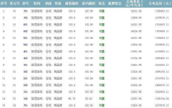 根據云南省物價局關于發布《云南省商品房銷售明碼標價實施細則(試行)》的通知,現將該項目商品住房的準售房源及每套房屋價格向社會公布,房地產開發企業應嚴格按照公布價格,商品房銷售明碼標價實行一套一標。商品房經營者應當對每套商品房按照建筑面具進行明碼標價,否則,房產登記機關不予登記備案。準售房源及房價信息如下: