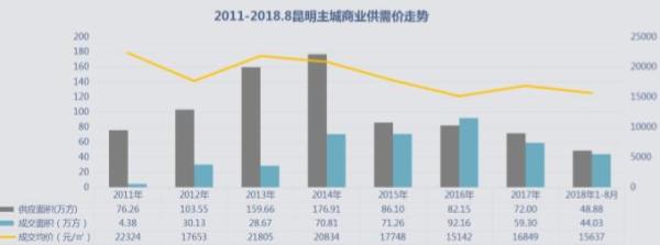 從成交價格方面看,2011—2018年,整體成交價格呈下降趨勢,2016年,均價下滑至15142元/㎡,2018年整體市場商 業地產存量大,同質化競爭加劇,結構性問題突出和去庫存的壓力,成交均價15637元/㎡,環比下降7.19%。