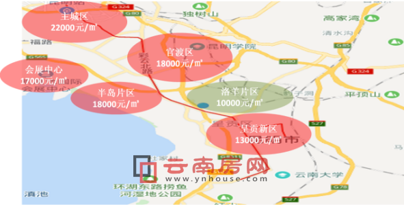 2016年底,位于呈貢吳家營的高鐵昆明南站投入運營,呈貢的投資價值瞬間凸顯,投資開始密集地向這個飛速發展的新區聚集。2017年,呈貢高鐵南站旅客吞吐量達到1400萬人次,讓呈貢一躍成為云南第二大交通樞紐,并有望于近兩年內超越長水機場,成為云南第一大交通樞紐。鬼城摘帽,產業聚集,呈貢新區的飛速發展,引來大量房企爭相進駐,投資者蜂擁跟進,隨之而來的是房價的一路飆升。高鐵開通后,呈貢的投資型物業首先開始爆發,公寓銷售量價齊漲,一年之內漲幅即超過30%。住宅方面,目前呈貢在售和即將推出的項目已經全部過萬,甚至有部分房源價格已經達到了17000元/平米,已經相當接近主城四區的均價水平。