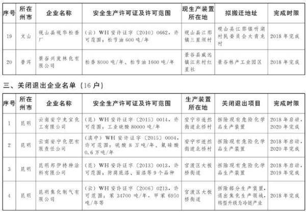 《云南省城鎮人口密集區危險化學品生產企業搬遷改造名單》已經省人民政府同意,現予印發公布。