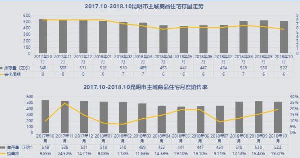 2018年1-10月昆明主城商品住宅推盤77次,共計推出235.32萬方,成交192.72萬方;5、6月份推出體量較大,整體去化較高,由于7月昆明限購新政出臺,推出產品較少,成交量較低,但市場仍舊熱度不減,8月開盤數量與推出體量增多,整體去化良好,9月、10開盤項目較多,但項目推出體量較小,預計11、12月項目會持續集中入市年底沖刺。