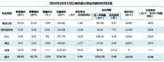 去化:本月商品住宅庫存減少至474.04萬方,按照近一年銷售824.10 萬方的去化速度,需0.58年消化;各物業中除車庫 其余物業庫存均有所減少,其中辦公庫存減少最多,為10.41萬方,整體市場仍處于高位運行,商業、辦公和車庫庫存仍較 高,去化速度緩慢,壓力較大。