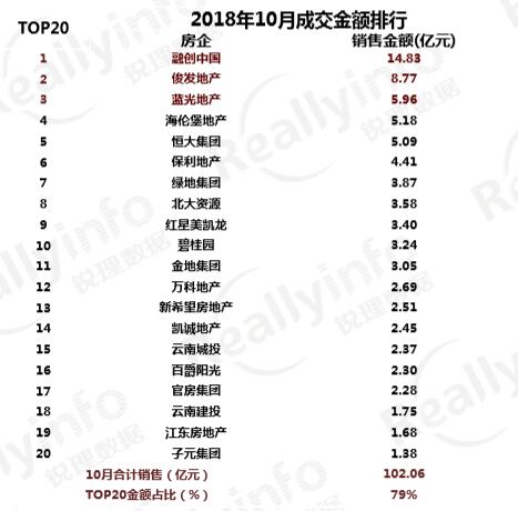 房企:本月商品房銷售金額102.06億,融創中國銷售金額14.83億元,位于榜首位置。
