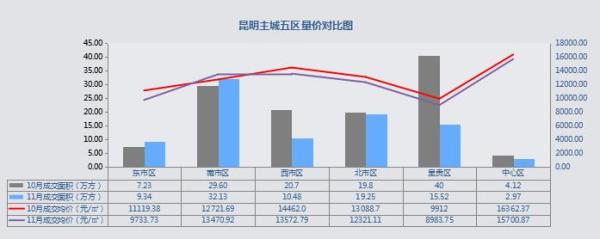11月主城商品住宅成交89.70萬方,環比下降26.4%,同比下降39.9%,市場存量充足,成交量小幅下降,成交主要位于南市區、北市區及呈貢區;南市區主力成交,去化32.13萬方,北市區成交19.25萬方,南市區量多價高,拉平均價;