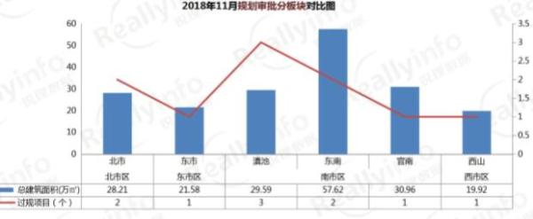 本月項(xiàng)目過規(guī)分布在北市區(qū)、東市區(qū)、南市區(qū)和西市區(qū),其中南市區(qū)過規(guī)體量最大,過規(guī)建面118.17萬方,占比63%;北 市區(qū)過規(guī)建面28.21萬方,占比15%;東市區(qū)過規(guī)建面21.58萬方,占比11%;西市區(qū)過規(guī)建面19.92萬方,占比11%。