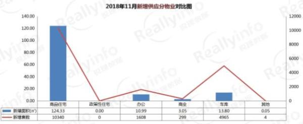 本月新增供應(yīng)中,商品住宅供應(yīng)10340套,面積124.33萬方;辦公供應(yīng)1608套,面積10.99萬方;商業(yè)供應(yīng)299套,面積 3.05萬方;車庫供應(yīng)4965個(gè),面積13.80萬方;政策性住宅無新增供應(yīng)。