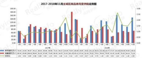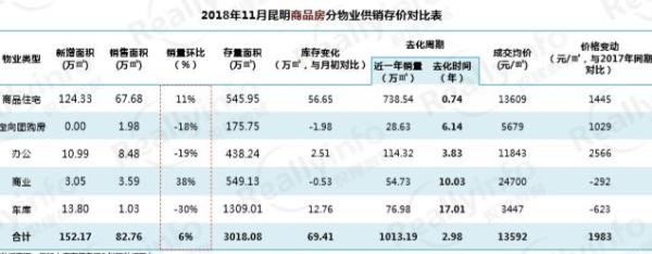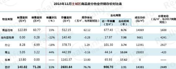 截止2018年11月30日,商品房庫(kù)存3018.08萬(wàn)方,按近一年銷售面積1013.19萬(wàn)方計(jì)算,還需2.98年去化,去化周期略有上升。