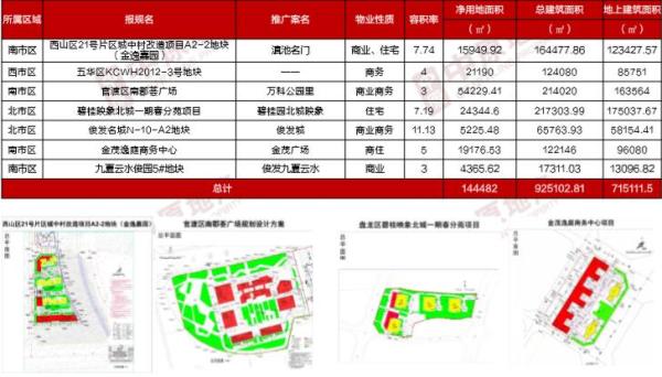 據昆明中原監測數據顯示,本周共7個項目過規,凈用地面積約14.44萬㎡,總建面約92.51萬㎡
